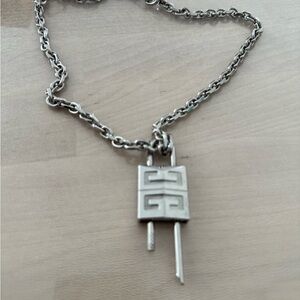 Stylish silver necklace with a geometric pendant. Perfect for any occasion. 100% authentic necklace from Givenchy. One size