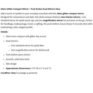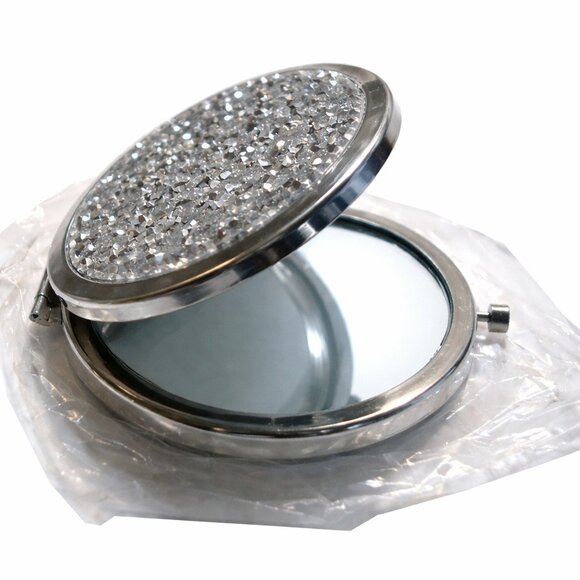 Silver Glitter Compact Mirror – Push Button Dual Mirrors New in original package