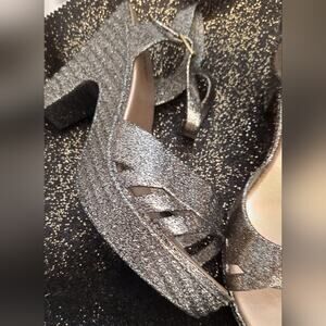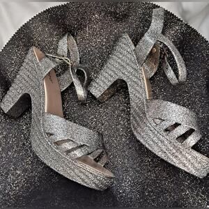 Silver Glitter Jelly Block High Heel Sandals Shoes NEW Platform Sz 7