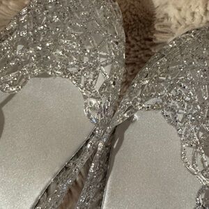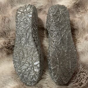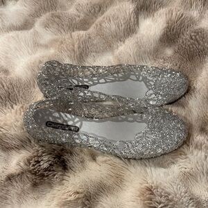 Sparkling silver jelly flats with intricate design. Perfect for adding a touch of glam to any outfit.