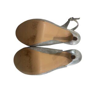 Silver Glitter Peep Toe Slingback Stiletto Heels 9M Fabric Upper Bonded Leather