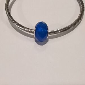 Silver Glittery Blue Faceted Charm for Pandora Style Bracelet