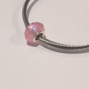 Silver Glittery Pink Faceted Charm for Pandora Style