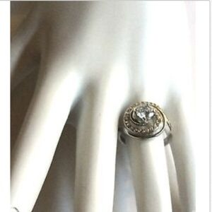 Silver Gold Art Deco Cocktail Ring Size 8 9 10 Statement Swirl Cubic Zirconia