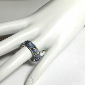 Silver Gold Blue Enamel Ring Band Size 9 Eternity Rhodium Plated Cubic Zirconia