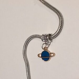 Silver Gold Blue Saturn Planet Enamel Dangle Charm for Pandora Style Bracelet