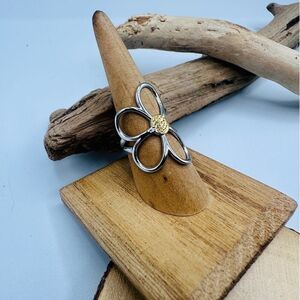Silver & Gold Flower Statement Ring- Stainless Steel 18K