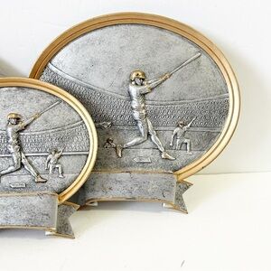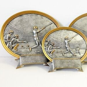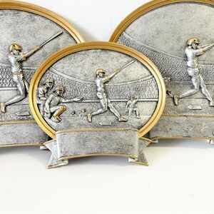Silver Gold Male Baseball Batter Resin Trophy Awards Plaque Coach Gift Lot of 3