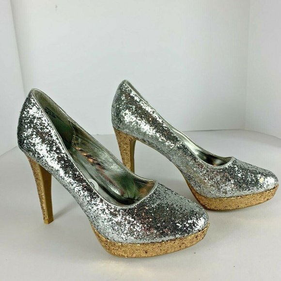 Silver Gold Pumps Stripper Platforms Stilettos Women’s Size 10M Rampage Glitter
