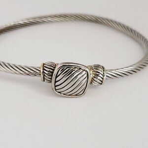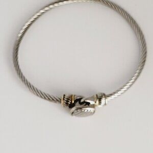 Silver & Gold Tone Cable Bangle Bracelet Hook Clasp