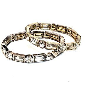 Silver & Gold Tone Clear Cabachon Stretch Bracelet Set