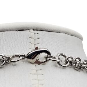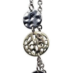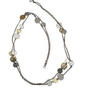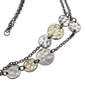 Silver & Gold Tone Double Chain Necklace Retro Long Hammered Disc Layered Y2K