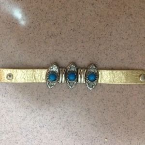 Silver, Gold & Turquoise Wrap Bracelet