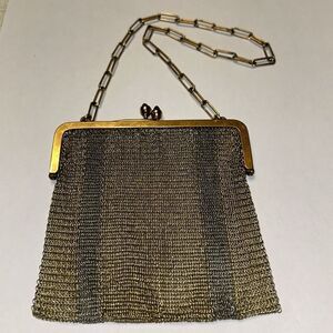 Silver & Gold Vintage Mesh Bag 4”x 4” Kiss Clip Closure Rolled Gold