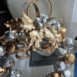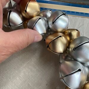 Silver & Gold jingle bells wreath hanging cord Holly decor . One bell has slight marks. Last pic