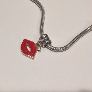 Silver Gold Red Lips Enamel Dangle Charm for Pandora Style Bracelet