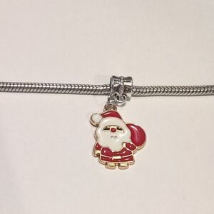Silver Gold Red White Santa Claus Christmas Enamel Dangle Charm for Pandora Style Bracelet