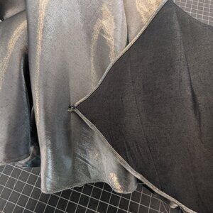 Gorgeous empire waist long gown made in two tone silver satin with liquid metal effect. Embroidered bodice, lace up back with zipper. Very pretty and elegant. Probably late 90s or early 2000s.