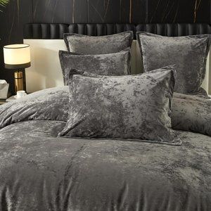 Silver Gray 5pcs Soft Crushed Velvet Grey Comforter and Shams Set King Size Bed