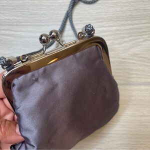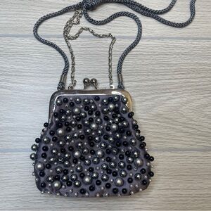 Silver Gray Beaded Satin Kisslock Coin Purse Wristlet Shoulder Mini Bag