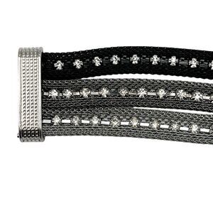 3 Strands of Silver Gray and Black Tone Mesh Accented With Clear Rhinestones.