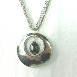 Silver Gray Hollow Circle Pendants Necklace 3 Chains Fashion Jewelry