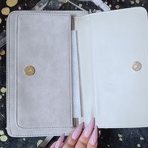 Silver Gray Tones Gold Accent Crossbody Wallet Purse Bag detachable strap magnetic button closure no tag new in packaging