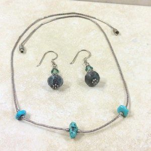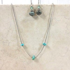 Silver Green Blue Jewelry Necklace Earrings Set Women Trinket Jewelry Gift VTG