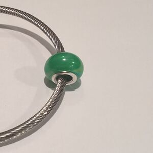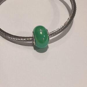 Silver Green Pearlesque Charm for Pandora Style Bracelet