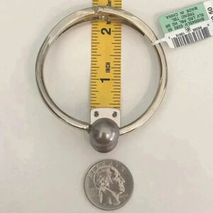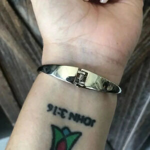 Silver tone alloy metal spring hinge cuff bracelet. Beautiful quality. Model’s wrist is approximately 6.5 inches. Bundle and save. I ship fast!
