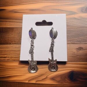Stylish silver dangle earrings with guitar design. Perfect for music lovers. Handmade by me.