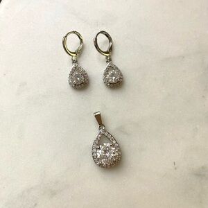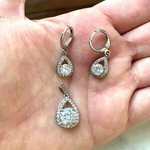 Silver Halo setting Cubic Zirconia/Swarovski crystal earrings matching pendant