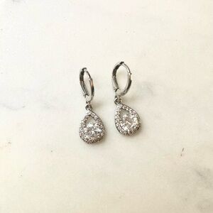 Wore this set when I was a bridesmaid in a wedding. I no longer have chain for the necklace. I’m not a silver gal. I also have no idea of the stones are cubic zirconia or Swarovski crystal. This set was gifted to me from the bride. Any silver chain would pair perfectly for this! Selling as set.