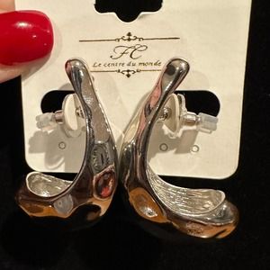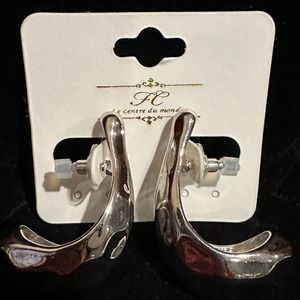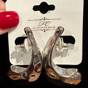 Silver Hammered Scoop Earrings, NWT