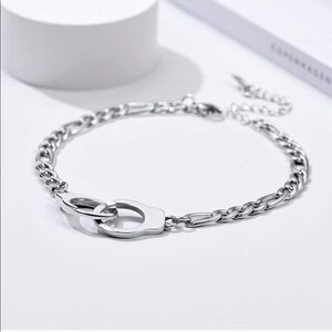 Silver Handcuff Anklet Figaro Chain Handcuff Ankle Bracelet