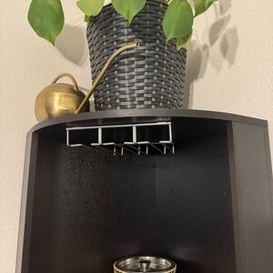 Sleek silver wall-mounted wine glass rack. Perfect for organizing and displaying glassware.