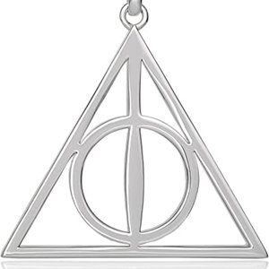 Stylishly enter the Harry Potter universe wearing a Deathly Hallows pendant necklace. Triangular pendant features the Deathly Hallows symbol