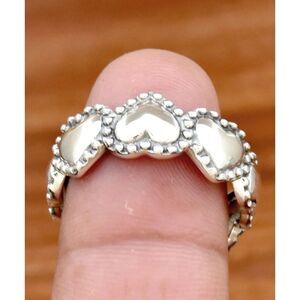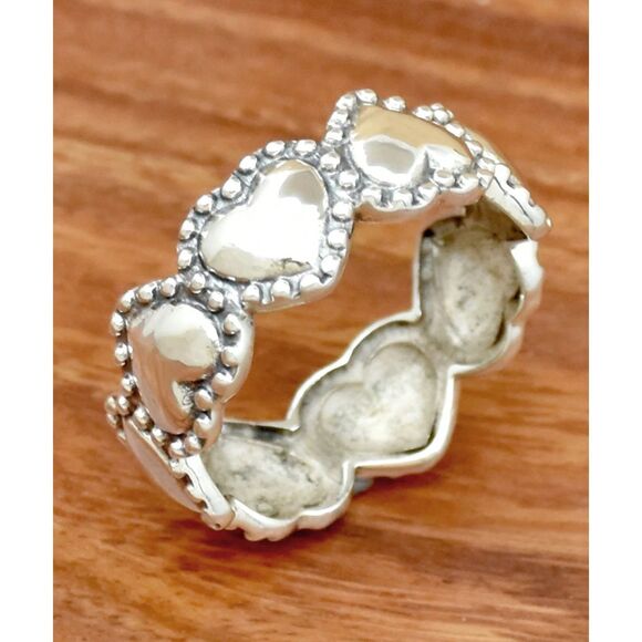 Silver Heart Band Eternity Ring Wide Vntg Style Boho Retro Fashion Jewelry sz: 8