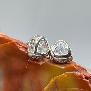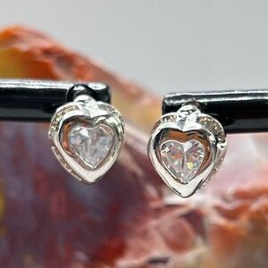 Silver Heart Bezel Set Stud Earrings Swarovski Crystals