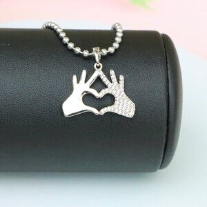 "Silver Heart Hands Pendant in Gold Plated Brass with Crystal Detail, XPPT1728 Beautiful hand-shaped heart pendant with sparkling crystal accents. ✔️ Crafted from high quality brass with silver-toned gold plating ✔️ Features a hand-heart design symbolizing love and unity ✔️ One hand polished, the other encrusted with dazzling crystals ✔️ Unique and artistic, perfect as a meaningful gift ✔️ Approx. size: 0.98 x 0.67 inches (2.5 x 1.7 cm) ✔️ Versatile accessory for both casual and formal wear"