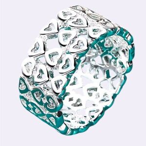 Silver Heart Pattern Ring