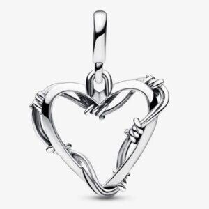 Elegant heart-shaped pendant. Unique barbed wire design. Perfect for any occasion.