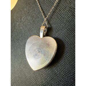 • Double-sided heart-shaped pendant with engraved ray design and cardinal artwork