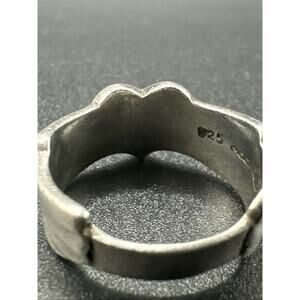 Elegant silver heart ring with intricate detailing. Perfect for adding a touch of sophistication to any outfit.