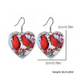 Silver Heart Shaped CARDINAL Dangle Earrings