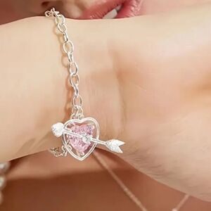 Silver Heart Arrow Bracelet with Pink Gemstone