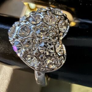 Silver Heart Rhinestone Statement Ring Size 9 Romantic Sparkle