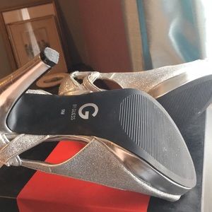 Silver G by Guess heels Over all in good condition Some scuffs on heels Have had this pair over 4 years only worn a handful of times