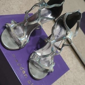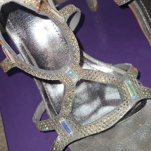 Fabulous digitized Silver jeweled sandal heels.. beautiful to pair with purple satin dress listed. Used once.