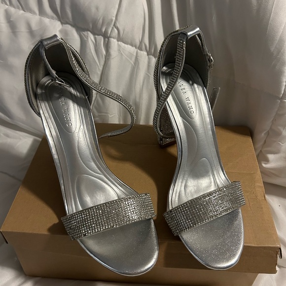 Silver Heels with Rhinestone Detailing